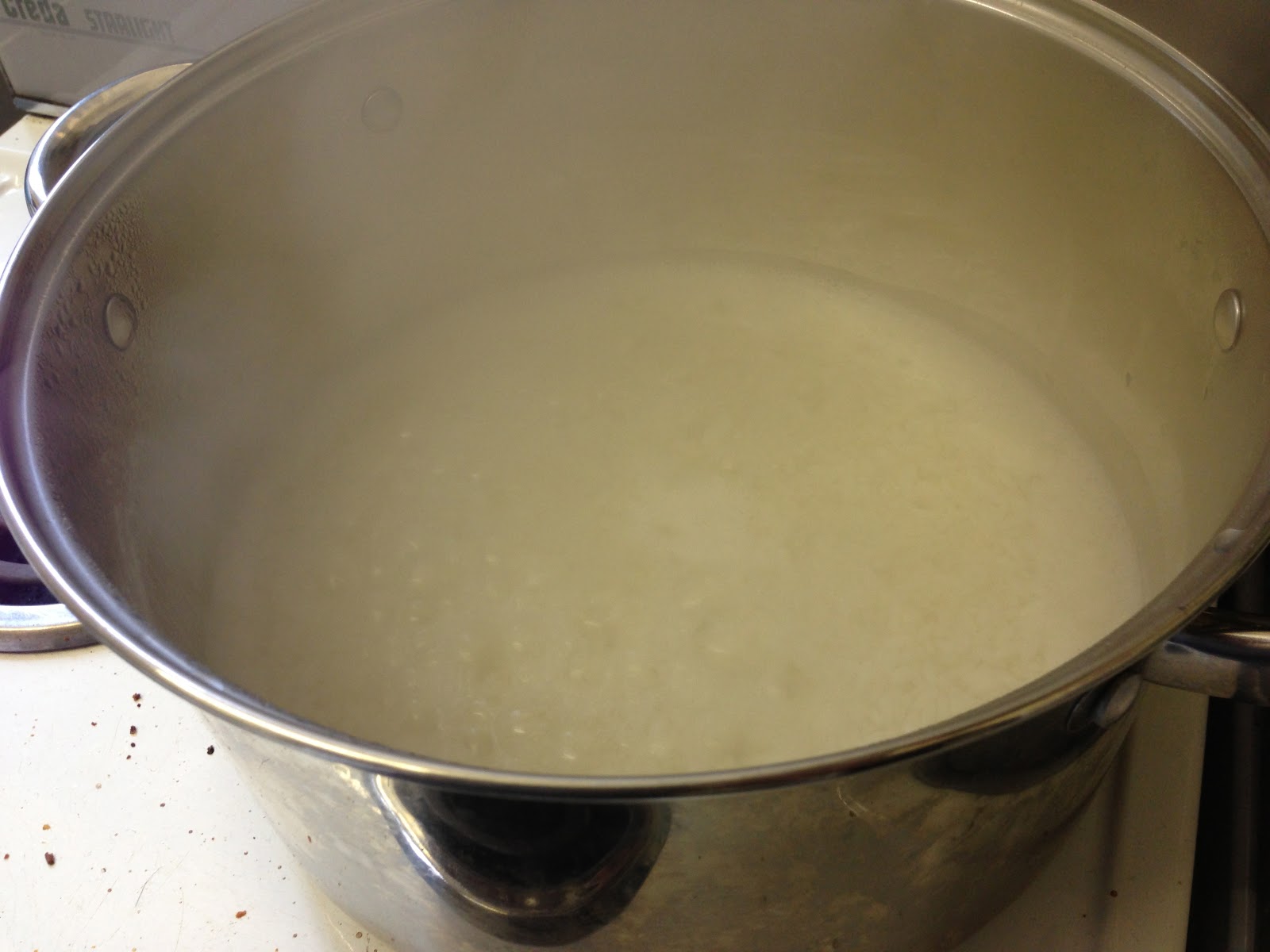 Fill the stock pot with water. You'll need quite a lot for this stage.